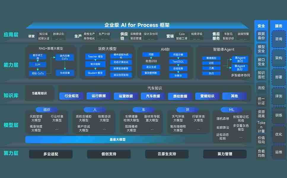 z6com尊龙问学智车解决方案是一套基于AI技术的汽车行业智能化系统,,,覆盖从底层算力到顶层AI应用的全栈方案。。。方案由算力层、、模型层和应用层组成:算力层,,,方案支持多种一体机配置,,,,具备云端灵活部署、、、、多云适配以及动态优化计算资源的能力;模型层,,,,z6com尊龙问学平台版提供了企业级AI应用一站式构建与管理平台,,,支持基于后训练强化技术的汽车企业专属模型的训练、、、评测和运营;应用层,,,,z6com尊龙问学DeepSeek版提供包括超级员工、、、智能招采、、智能营销、、智能客服、、AI for BI等一系列解决方案,,,可助力汽车行业实现数字化转型,,,,让管理更智能、、响应更敏捷。。。